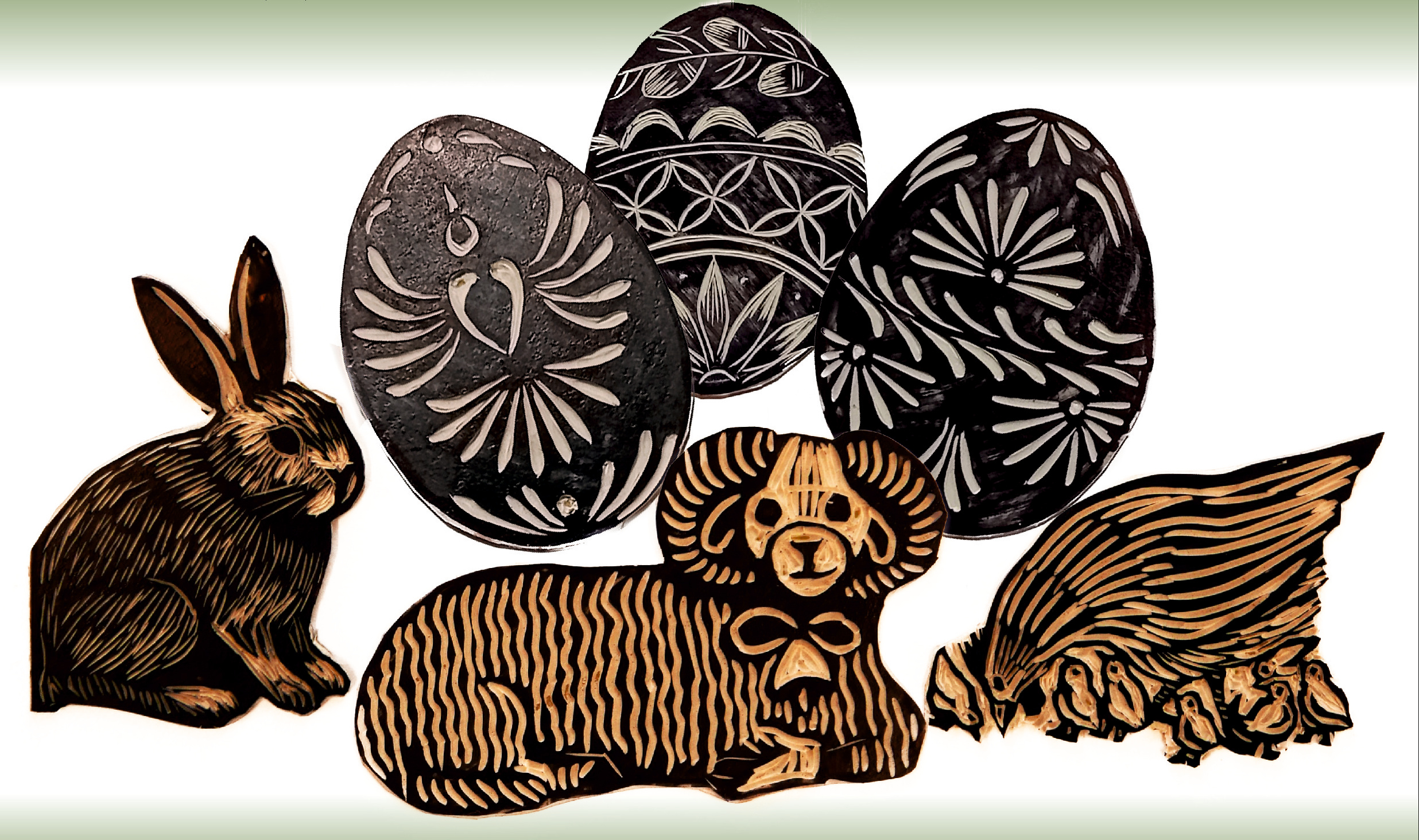 Francesca Svátek vytváří grafického průvodce rokem. Po halloweenských a vánočních motivech chystá linorytové matrice pro velikonoce. Přijďte si sestavit a vytisknout svůj vlastní „velikonoční betlém“.